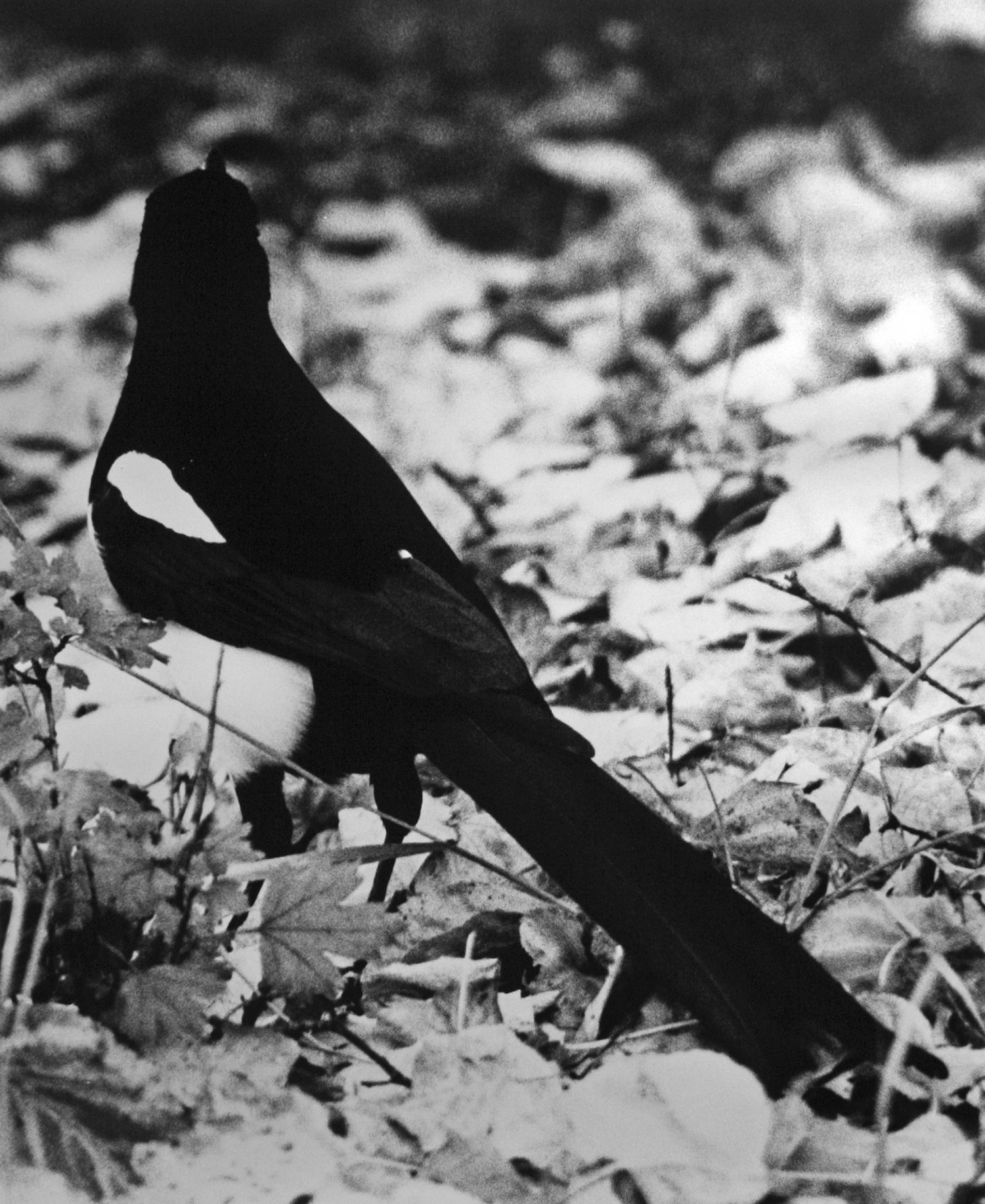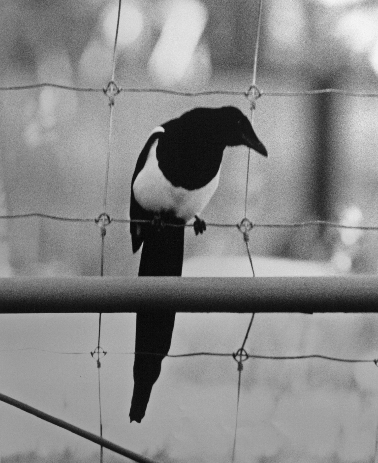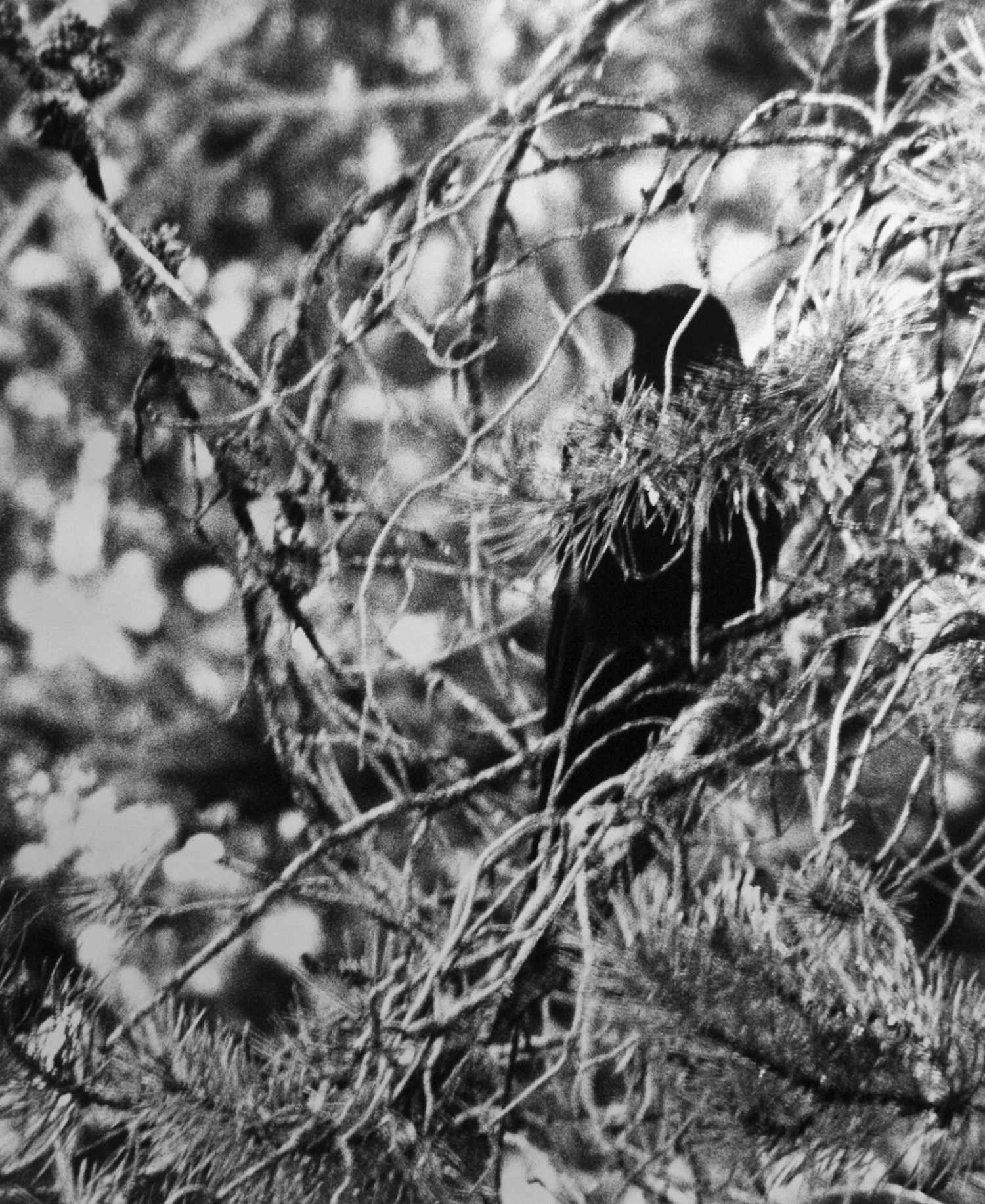 A series of six black and white photographs of ravens and magpies, each printed with heavy contrast and grain. Playing with ideas of sinister superstition surrounding birds, and considering folklore that ravens represent lost souls and magpies cause foreboding and worry, Conspiracy accentuates and agitates ominous nature. Who is being framed here? Birds, their spectators or the camera perhaps?