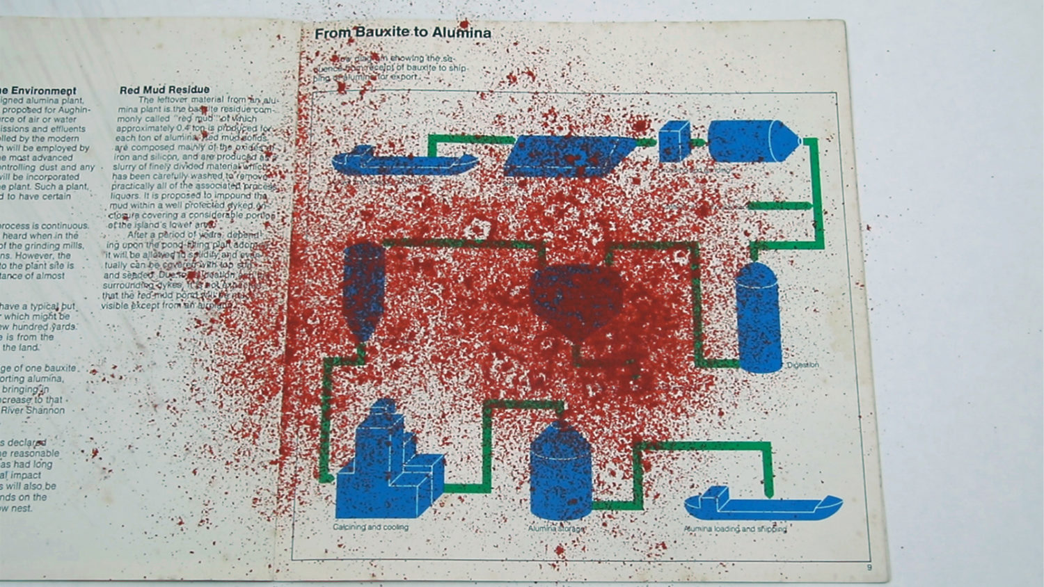 Continuing an ongoing investigation of Aughinish Alumina, Europe’s largest bauxite processing plant, an iteration of Stigma Damages exposes the genealogy and ongoing policy of corporate greenwashing at the site. A widespread campaign beside Ireland’s Shannon Estuary since the 1980s continues to convey false impressions and misleading information that the refinery’s products and activities are, if you were to believe, environmentally sound. What is the pretense of this language? Where and how is it encountered?
