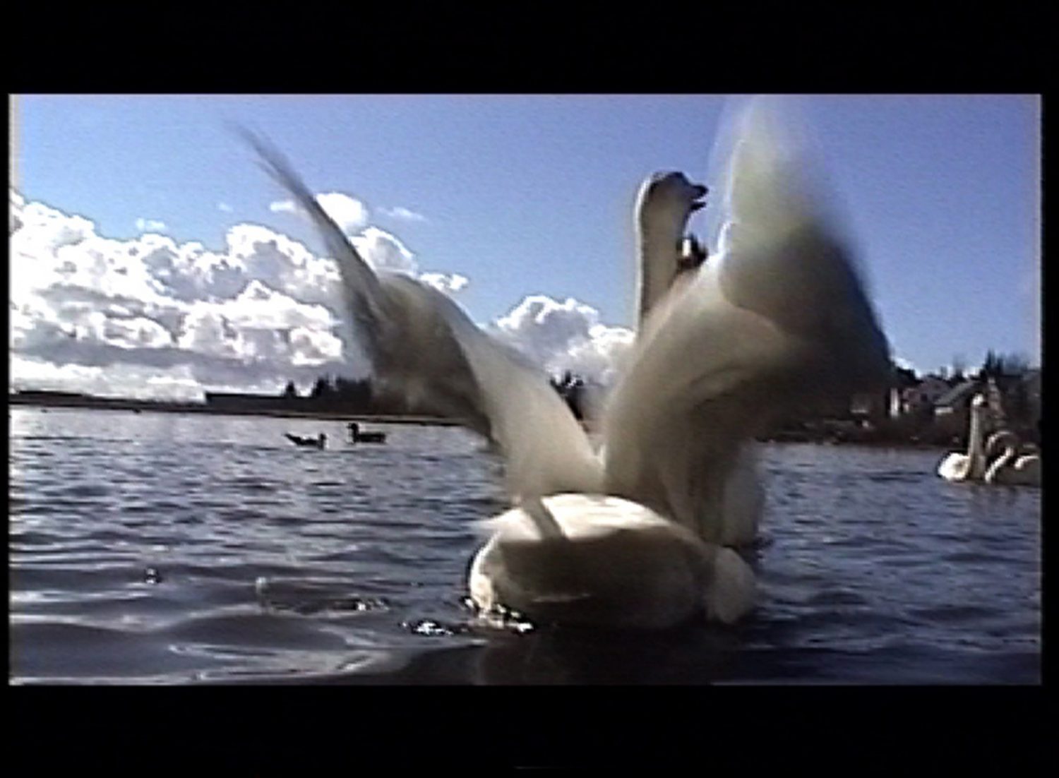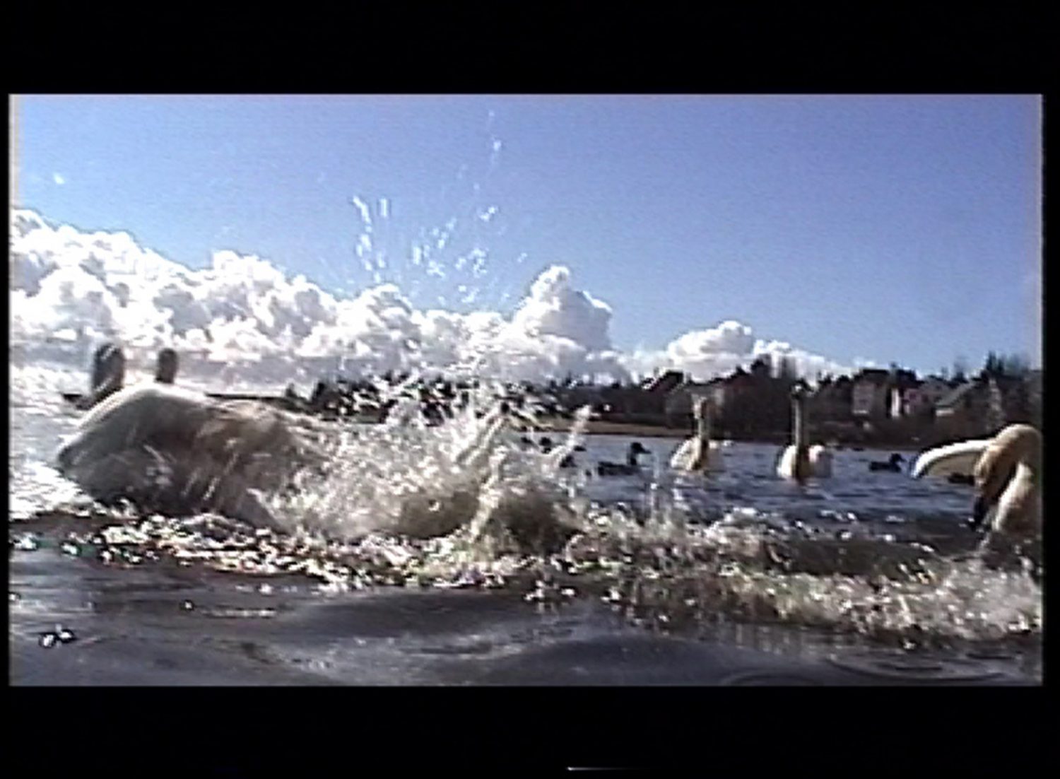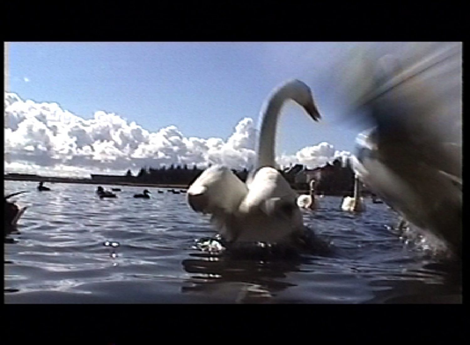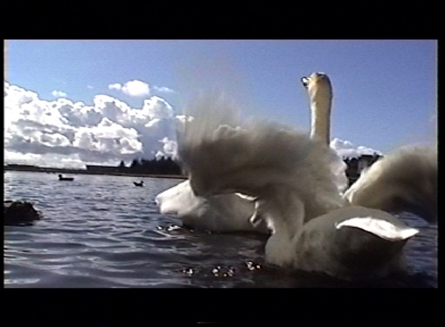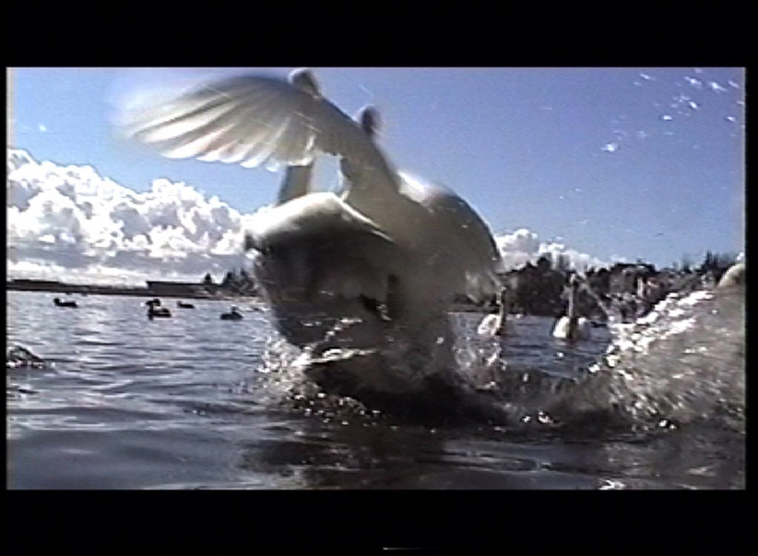 In Whooper Swan, ideas of perception and disillusionment are explored. The beauty and grace of this bird in a still image is shattered by a video piece of the swan’s shrill sound as it feeds and fights amongst ducks and seagulls. This double take seems to scratch at the edge of artistic representation, simultaneously presenting the lures and pitfalls of preconceptions of images.